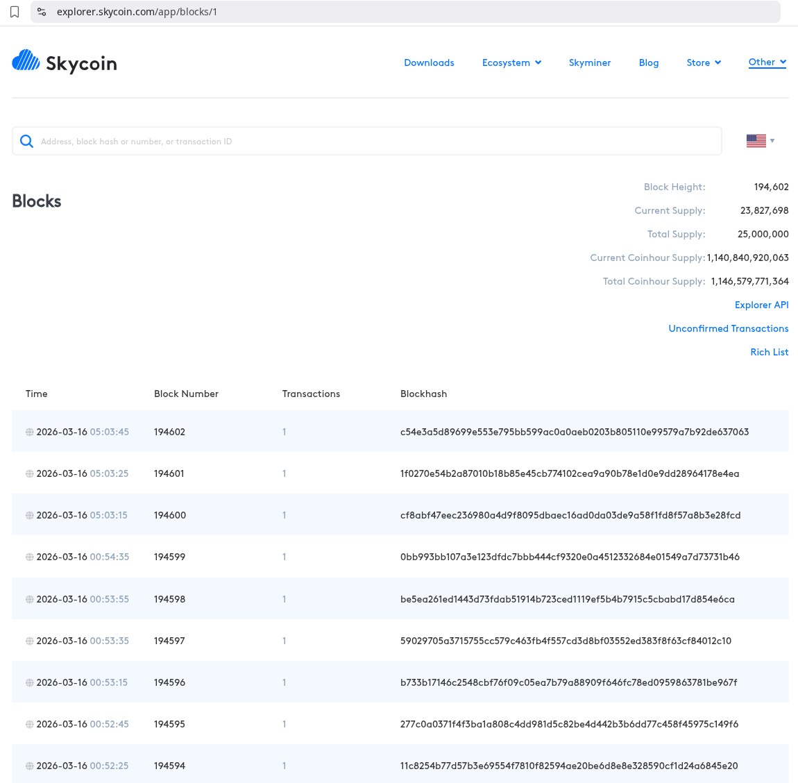 The Skycoin blockchain explorer is available at explorer.skycoin.com.